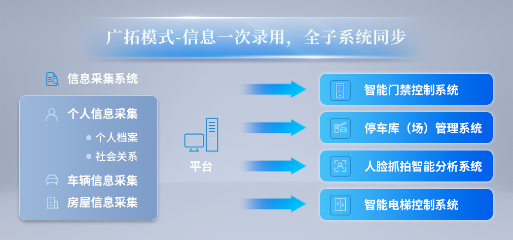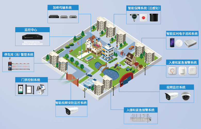 智能安防集成应用系统应采用通用的标准通信协议,实现与出入口控制系统、人脸抓拍系统、视频监控系统、停车库 (场)管理系统、实时巡检系统、智能保障系统等各个安防子系统的互联,对各个集成的子系统进行数据采集、联动处理和综合监视管理。系统采用B/S架构,可通过手机、pad、PC等实现快速访问。