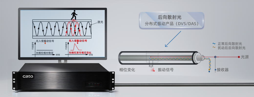 基于先进的声波传感技术(DAS),利用光纤作为传感器来监测声波活动。当声波信号沿光纤传播时,会引起光相位的线性变化。主机通过解调对应位置光相位变化,结合高维抽象算法与系统模型库,AI智能识别具体入侵事件类型,响应相应报警模式。