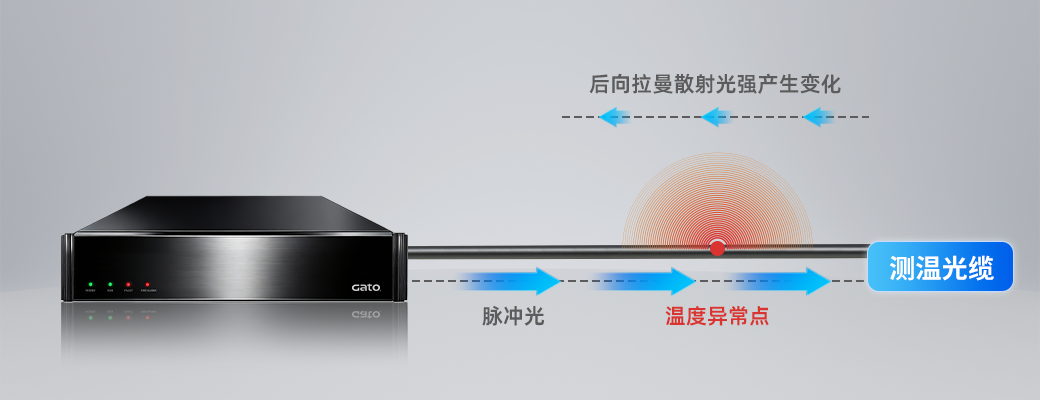 DTS定位型测温光纤系统基于拉曼散射(RAMAN)和光时域反射(OTDR)原理,通过对后向拉曼散射光信号强度进行处理和对比计算出温度分布曲线,,同时结合光的传输速度和回波时间实现温度点定位。具备信号采集、信号处理、数据分析、分区设置、报警值设定等功能,具有高精度和高空间分辨率等优势。