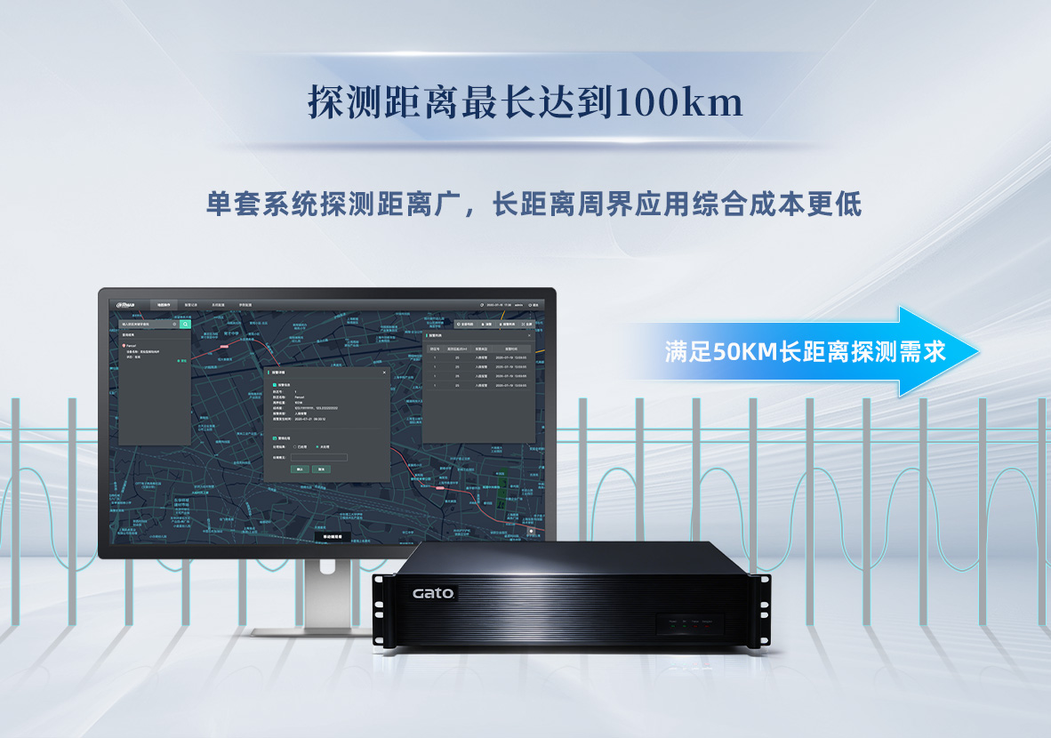 基于先进的声波传感技术(DAS),利用光纤作为传感器来监测声波活动。当声波信号沿光纤传播时,会引起光相位的线性变化。主机通过解调对应位置光相位变化,结合高维抽象算法与系统模型库,AI智能识别具体入侵事件类型,响应相应报警模式。